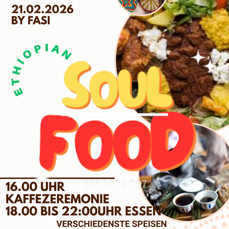 Ab 16Uhr starten wir mit einer Live Kaffee Zeremonie, zum Abendessen gibt es bunte Teller voller Aroma mit Gewürzen frisch aus Äthiopien. Reservierung macht Sinn.
